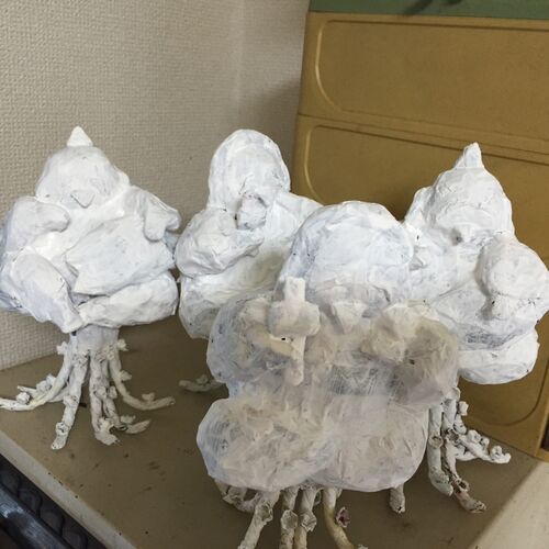 恵比寿、大黒、白を塗りました。これから色付けです。