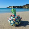 木暮奈津子です。新聞紙のオブジェを海で撮影しています。