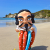 木暮奈津子です。新聞紙のオブジェを海で撮影しています。