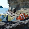木暮奈津子です。新聞紙のオブジェを海で撮影しています。